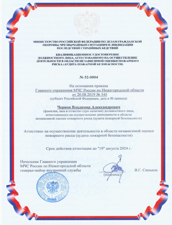 КВАЛИФИКАЦИОННОЕ УДОСТОВЕРЕНИЕ НА ОСУЩЕСТВЛЕНИЕ ДЕЯТЕЛНОСТИ В ОБЛАСТИ НЕЗАВИСИМОЙ ОЦЕНКИ ПОЖАРНОГО РИСКА (АУДИТА ПОЖАРНОЙ БЕЗОПАСНОСТИ)