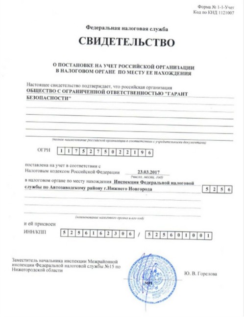 СВИДЕТЕЛЬСТВО О ПОСТАНОВКЕ НА УЧЕТ РОССИЙСКОЙ ОРГАНИЗАЦИИ В НАЛОГОВОМ ОРГАНЕ ПО МЕСТУ ЕЕ НАХОЖДЕНИЯ от 23.03.2017 г. № 5256